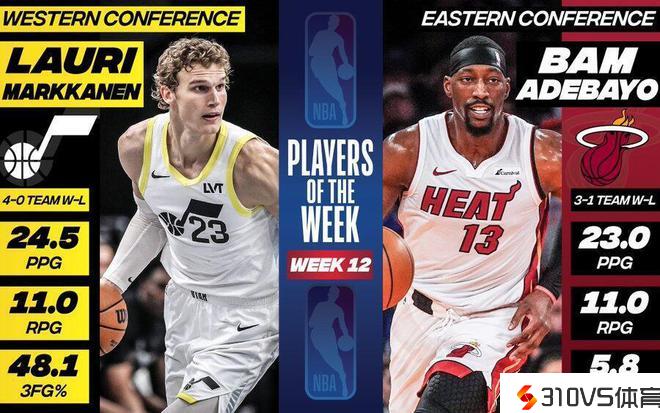 NBA官宣周最佳:阿德巴约马尔卡宁中选 字母哥乔治等10人获提名