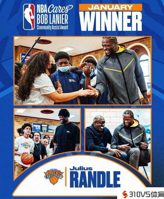 官方:兰德尔取得1月份NBA社区关心援助奖