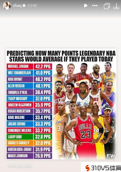 美媒预测退役名宿若在当今联盟场均得分:乔丹42.2分 奥尼尔转发