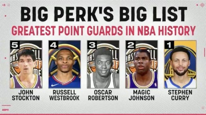 👀帕金斯排NBA历史前五控卫:库里、魔术师、大O、威少和斯托克顿