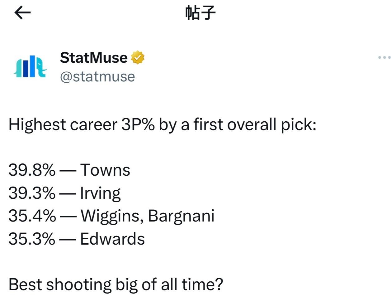 StatMuse配文:史上最好的大个子射手?