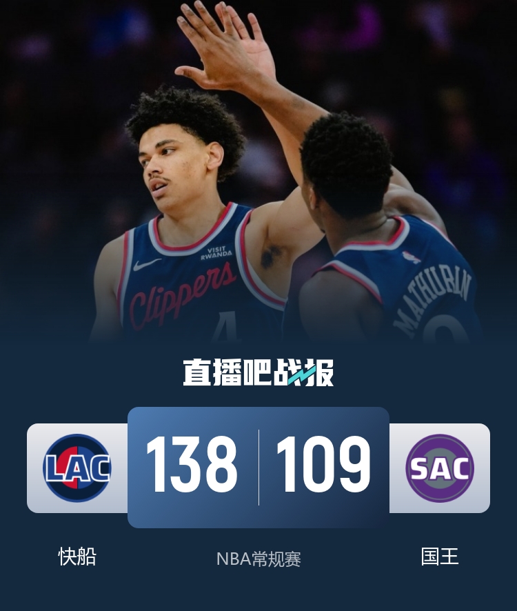 🏀快船29分大胜国王止连败 小卡连续54场20+ 德罗赞里程碑
