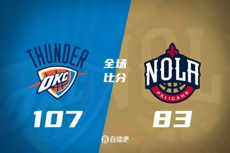 比赛开始,两队开场旗鼓相当,比分咬得很紧,次节鹈鹕命中率骤降,雷霆内外开花占据场上主动,亚历山大和霍姆格伦联手拿分帮助球队以50-41领先结束上半场。易边再战,双方围绕10分分差展开激烈争夺,鹈鹕里突外投,雷霆多点开花强势回应,末节鹈鹕再度哑火,雷霆持续发力将优势扩大到20分以上,比赛失去悬念。最终,雷霆107-83轻取鹈鹕,迎来5连胜重返西部榜首。