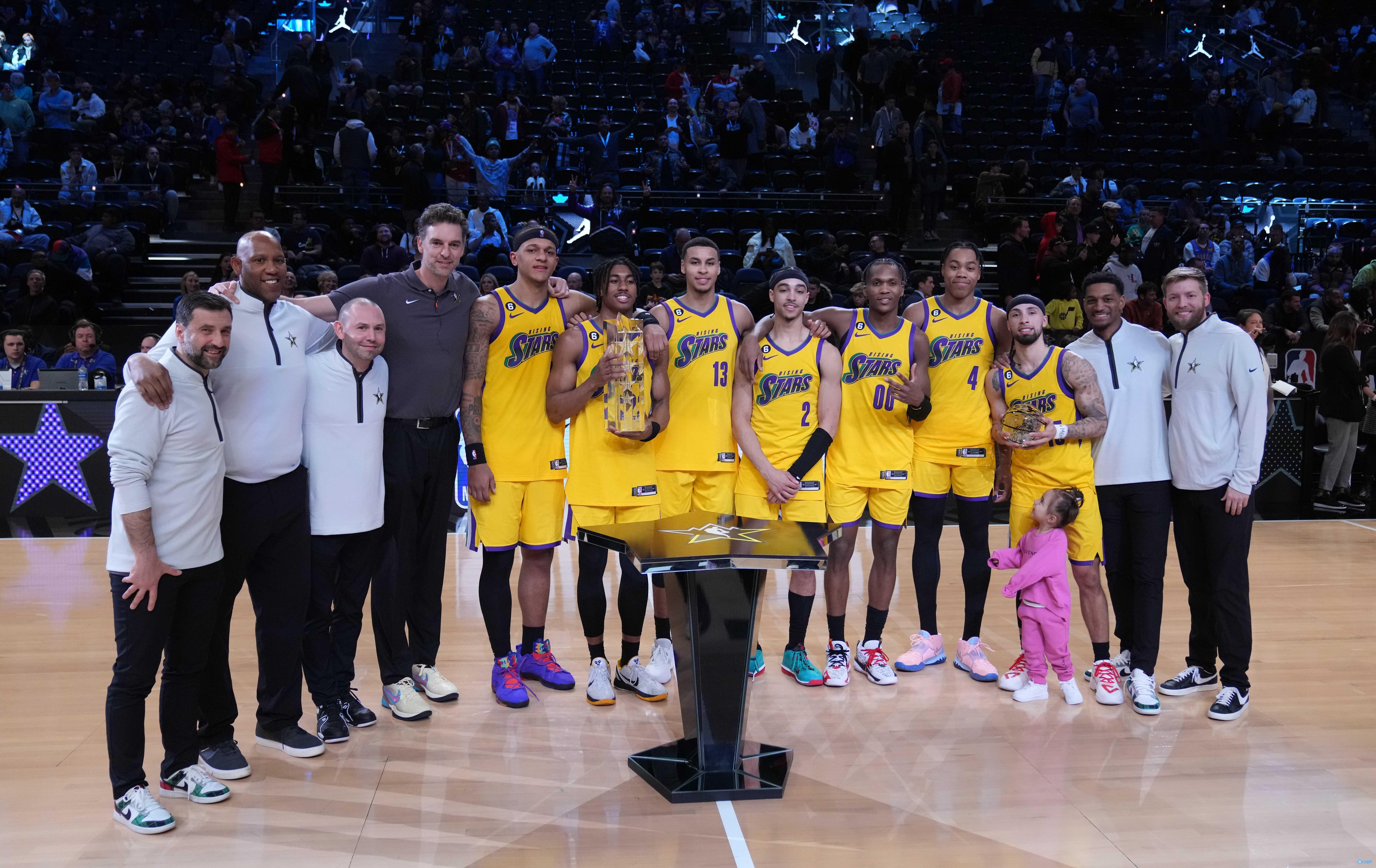 2月18日讯 NBA新秀挑战赛迎来最终决战,双方为首轮取胜的加索尔队和诺阿队,这场比赛的规则依旧是不设时间,谁先拿到25分则为胜者。