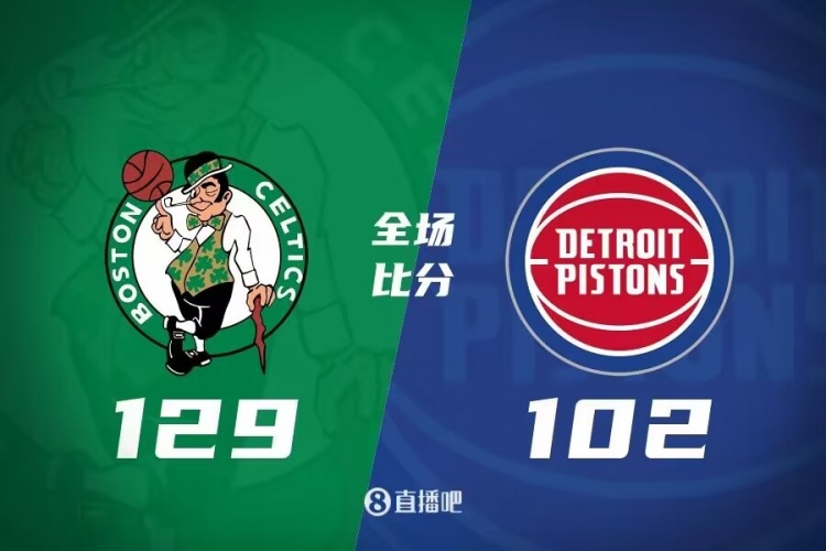 比赛开始,活塞上来打得很主动,怀斯曼非常积极首节就吃饼得分上双,而波尔津吉斯则是攻防两端撑起球队,杰伦-布朗也是内线连续强打咬住比分,首节绿军仅落后2分,次节双方展开对攻拉锯战,普理查德联手豪泽撑起进攻,活塞连续出现失误,绿军外线多点开花一度拉开20分以上领先。下半场,绿军持续发力,杰伦-布朗延续好状态里突外投单节轰17分,艾维则苦苦支撑,凯尔特人三节结束还是拉开20分以上领先,末节双方命中率都有下降,但凯尔特人还是牢牢掌握住20分左右领先,最终凯尔特人129-102轻取活塞,拿到8连胜的同时送对手5连败。