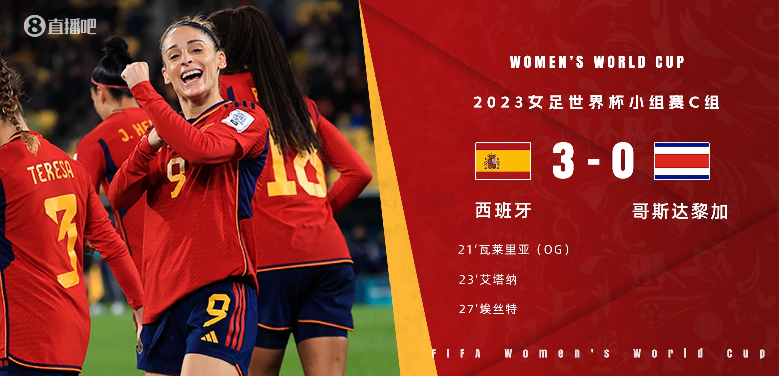 女足世界杯-全场射门46比1!6分钟3球西班牙3-0哥斯达黎加取开门红
