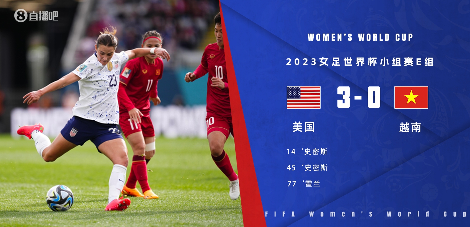 女足世界杯-美国3-0越南取开门红 摩根献助攻+失点史密斯两射一传