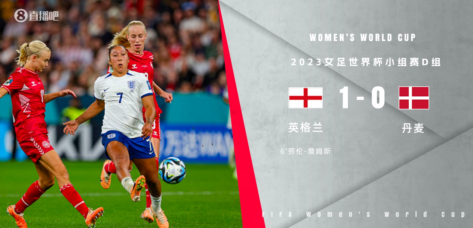女足世界杯-英格兰1-0丹麦两连胜末轮战中国女足 劳伦-詹姆斯制胜