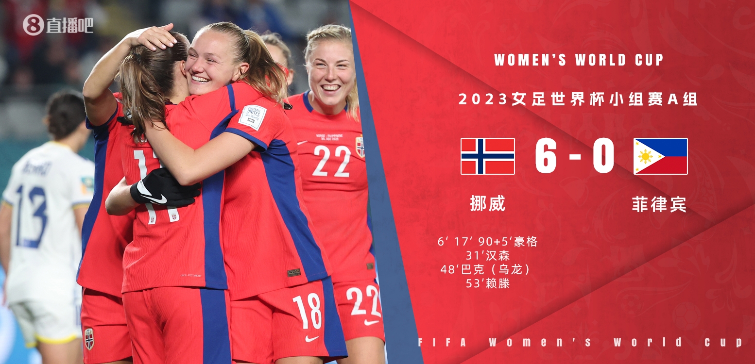女足世界杯-挪威6-0十人菲律宾晋级淘汰赛 豪格戴帽汉森世界波