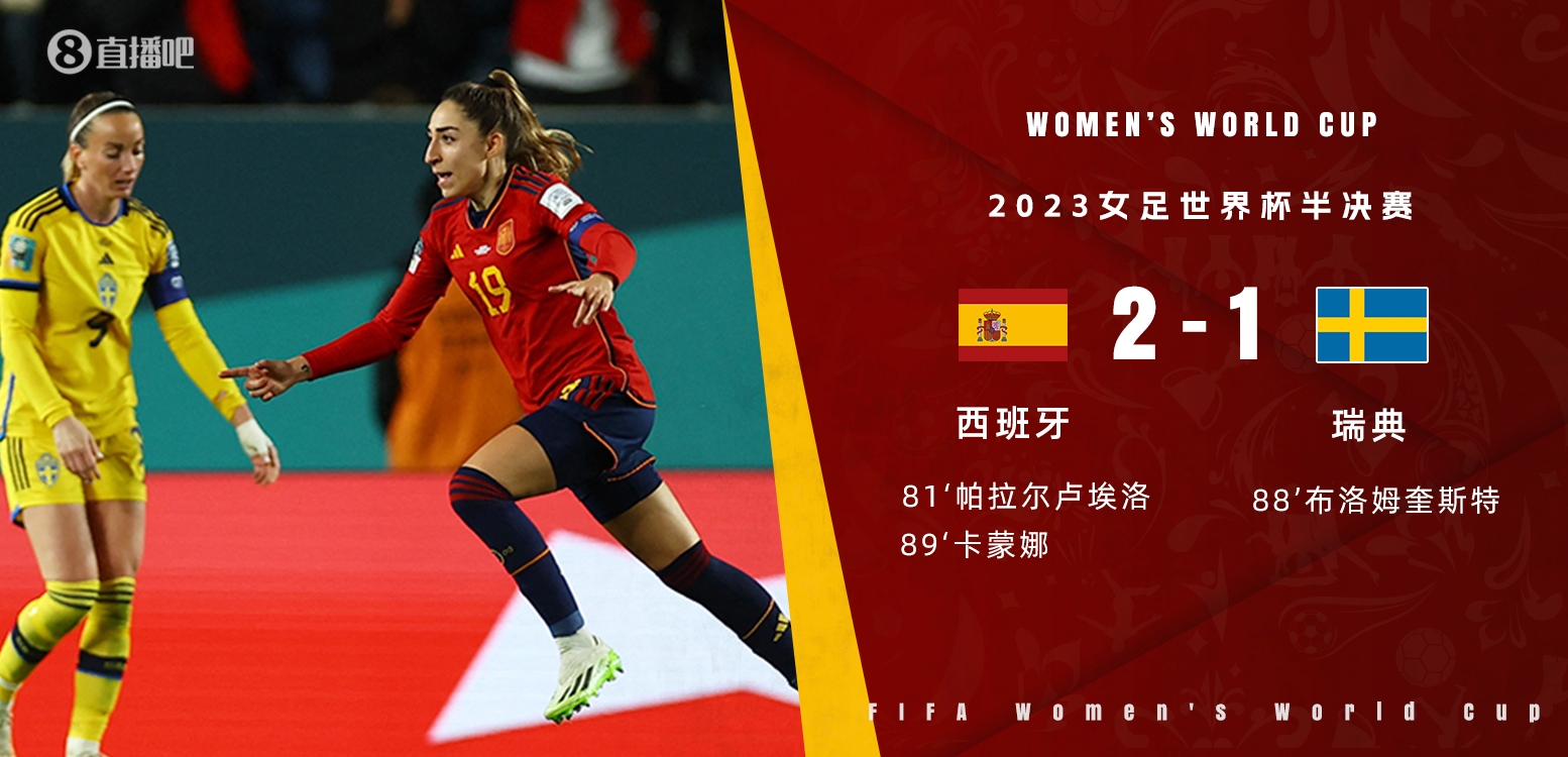 女世杯-西班牙2-1瑞典首进决赛 布洛姆奎斯特88分钟扳平卡蒙娜89分钟绝杀