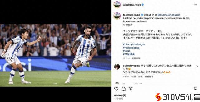 久保建英:完成团体欧冠首秀很开心但球队没赢球,真的很遗憾
