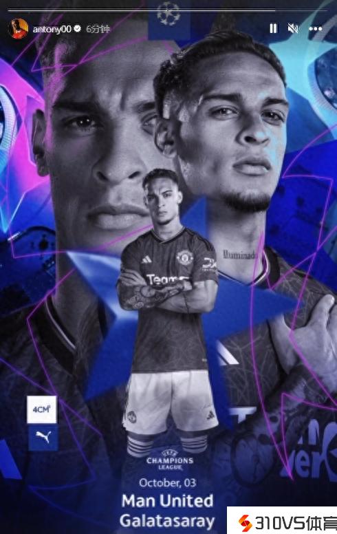 安东尼社媒晒团体海报,有望出战曼联与加拉塔萨雷的欧冠小组赛