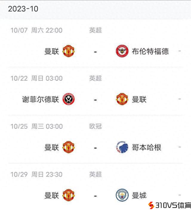 滕哈赫能否撑过十月❓曼联10月将战曼城小蜜蜂,欧冠战哥本哈根