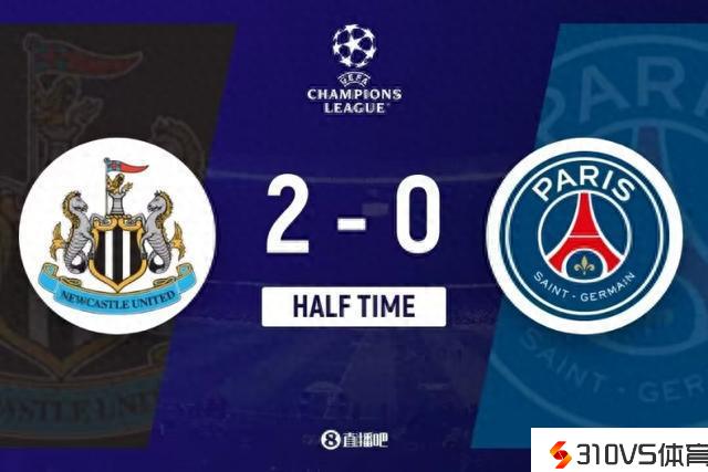半场-阿尔米隆打进纽卡时隔20年欧冠进球丹伯恩建功 纽卡2-0巴黎