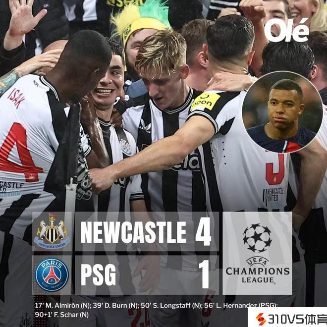 欧冠:纽卡斯尔4-1巴黎圣日耳曼