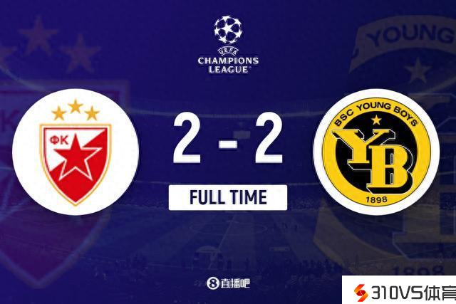欧冠-贝尔格莱德红星2-2绝闰年轻人 两队均积1分排G组第三四位