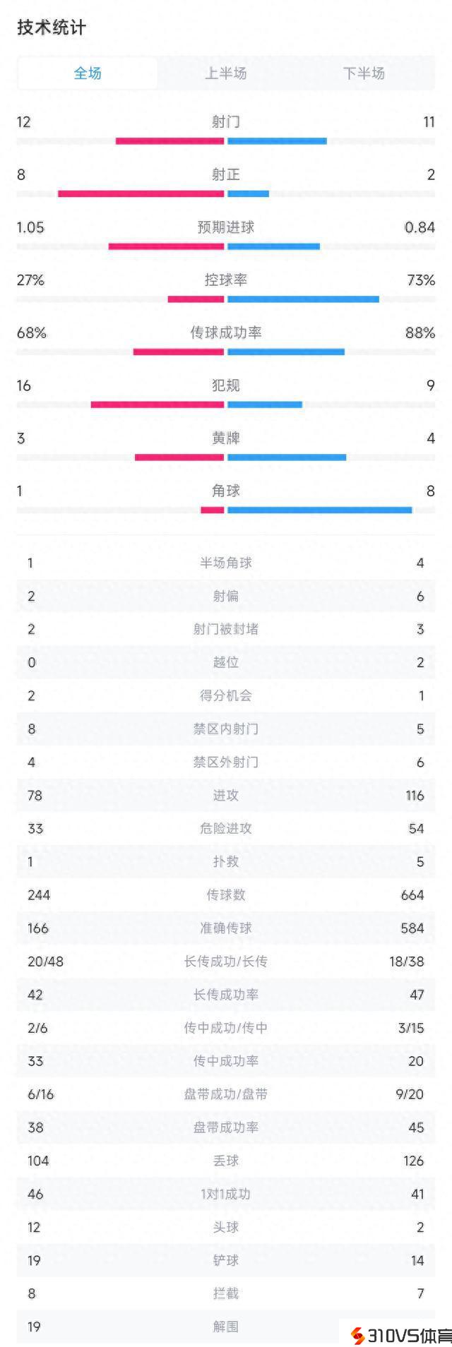 控球率:27%-73%