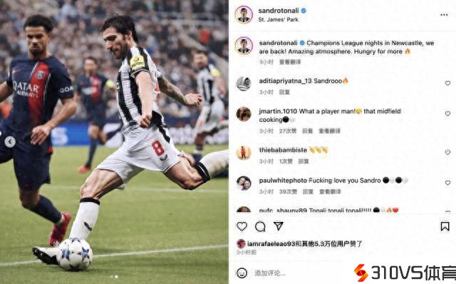托纳利:纽卡的欧冠之夜气氛太燃了,我们盼望取得更多成功