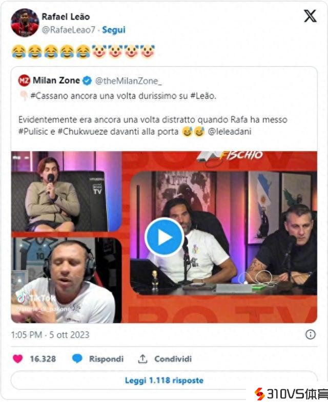 卡萨诺批判莱奥不防卫&进球效率低,莱奥回击:笑哭了,小丑