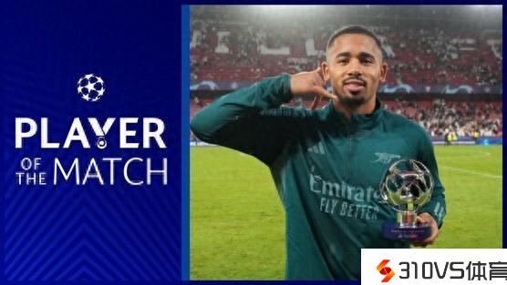 传射建功!欧冠官方:热苏斯中选塞维vs阿森纳全场最佳球员