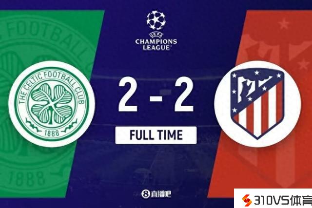 全场竞赛完毕,马竞2-2凯尔特人。