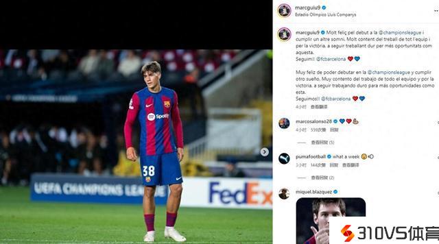 巴萨小将吉乌纪念欧冠首秀:又完成了一个梦想,会努力争取时机