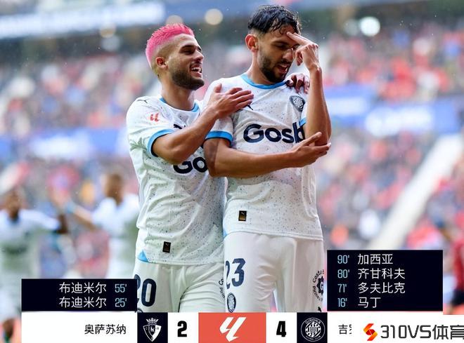 第25分钟,戈麦斯远射被扑出,布季米尔补射破门,协助奥萨苏纳1-1扳平比分。