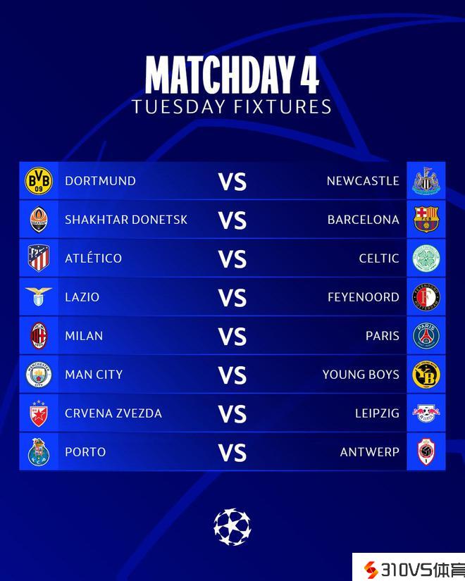欧冠冬令时离开⏰️聚焦死亡之组!米兰vs巴黎、多特vs纽卡