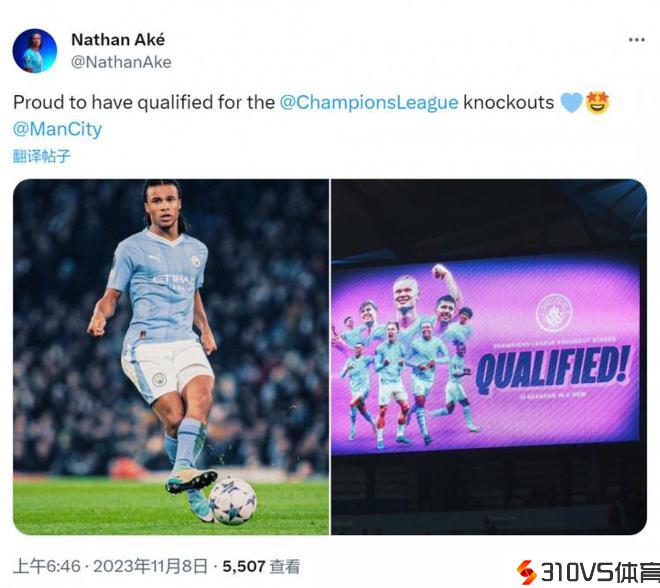 阿克社媒庆贺提早出线:很自豪晋级欧冠淘汰赛