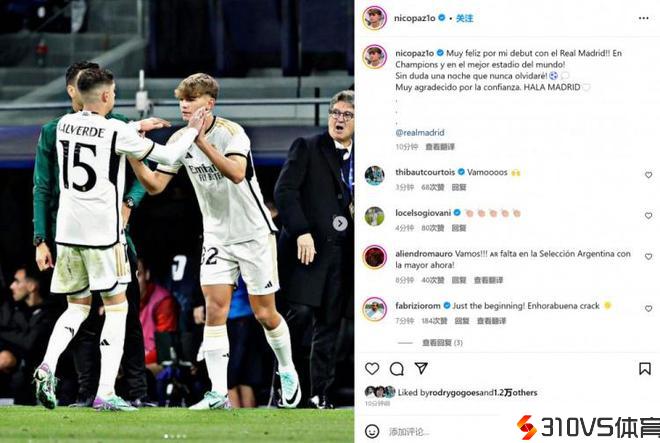 19岁小将尼科-帕斯社媒晒照纪念皇马首秀:这是永生难忘的一夜