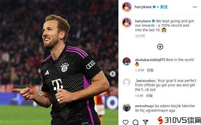 凯恩社媒:不懈努力失掉了报答,欧冠至今坚持全胜进16强