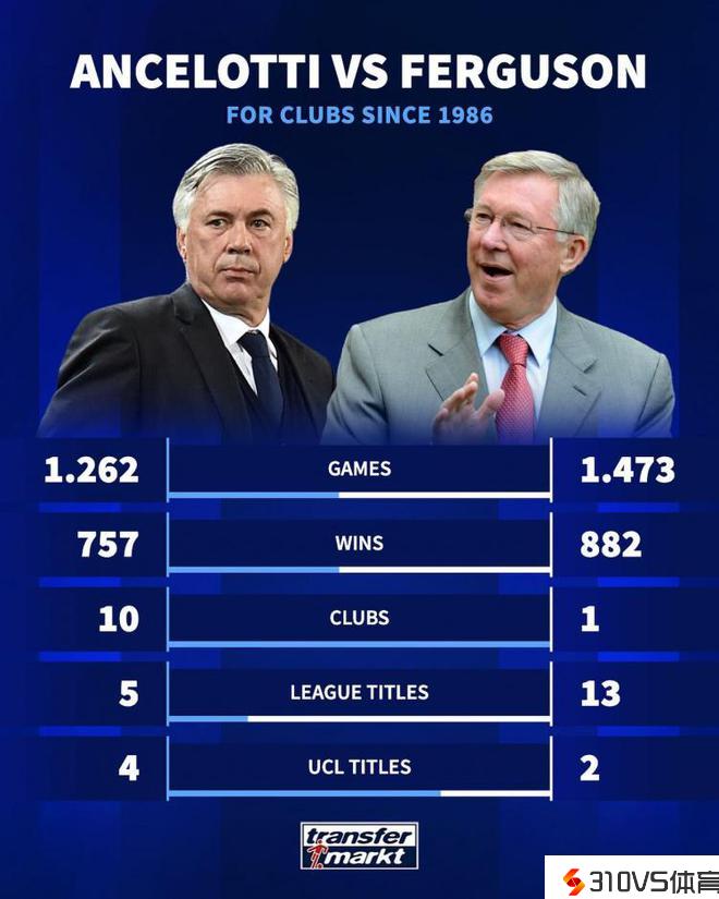 安帅、弗爵执教数据:757胜比882胜,联赛冠军5比13,欧冠4比2