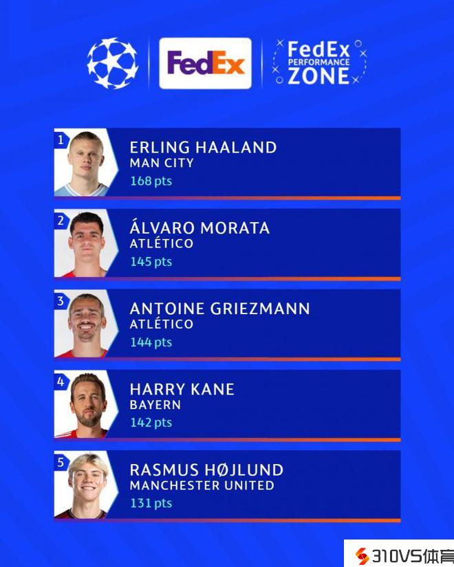 本赛季欧冠表现评分排名:哈兰德居首,莫拉塔、格子二三位