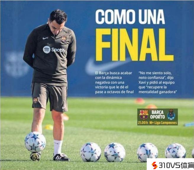 《世界体育报》指出,巴萨做好了打硬仗的预备,主帅哈维的压力和动力并存。坎塞洛的话,代表全队的心声:“我们将这场欧冠视为决赛,必需拿下!训练中我们十分努力,有着壮志雄心。”