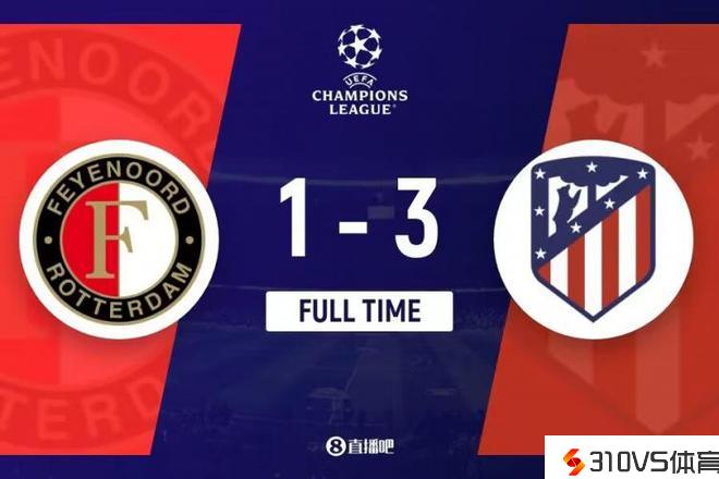 全场竞赛完毕,马竞3-1费耶诺德。