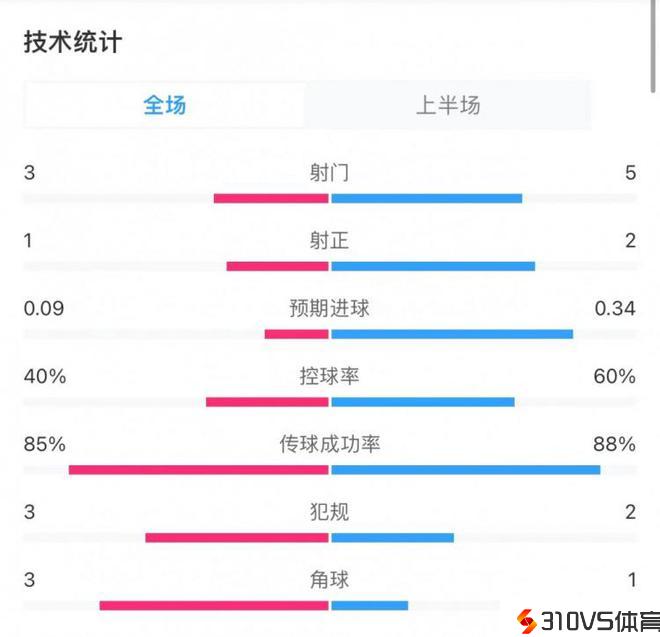 曼联0-0拜仁半场数据:控球率40%-60%,射门3-5,射正1-2