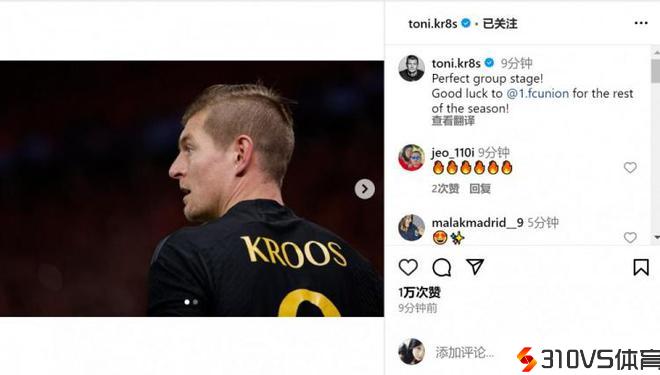 克罗斯社媒庆贺全胜晋级:完美小组赛,祝柏林联剩余赛季好运!
