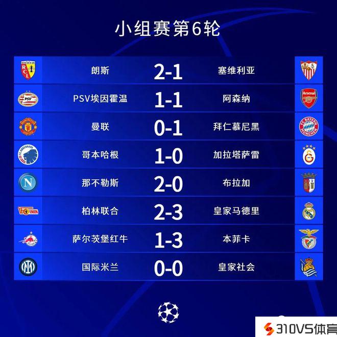 国际米兰坐镇主场0-0皇家社会,两队均积12分,皇家社会净胜球优势小组第一,国际米兰小组第二携手出线。