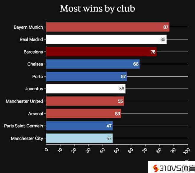 据统计,在这21个赛季的小组赛中,拜仁是获胜场次最多的球队,胜场数到达87,皇马和巴萨排在二三位。