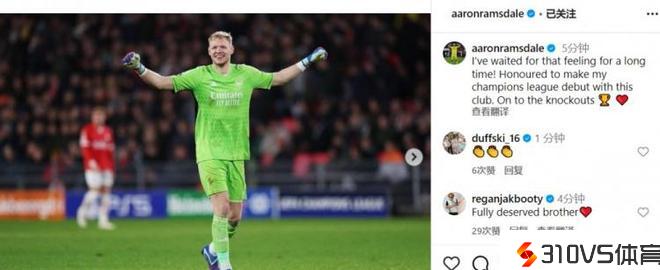 拉姆斯代尔社媒庆贺演出欧冠首秀:这一刻我等了太长时间了