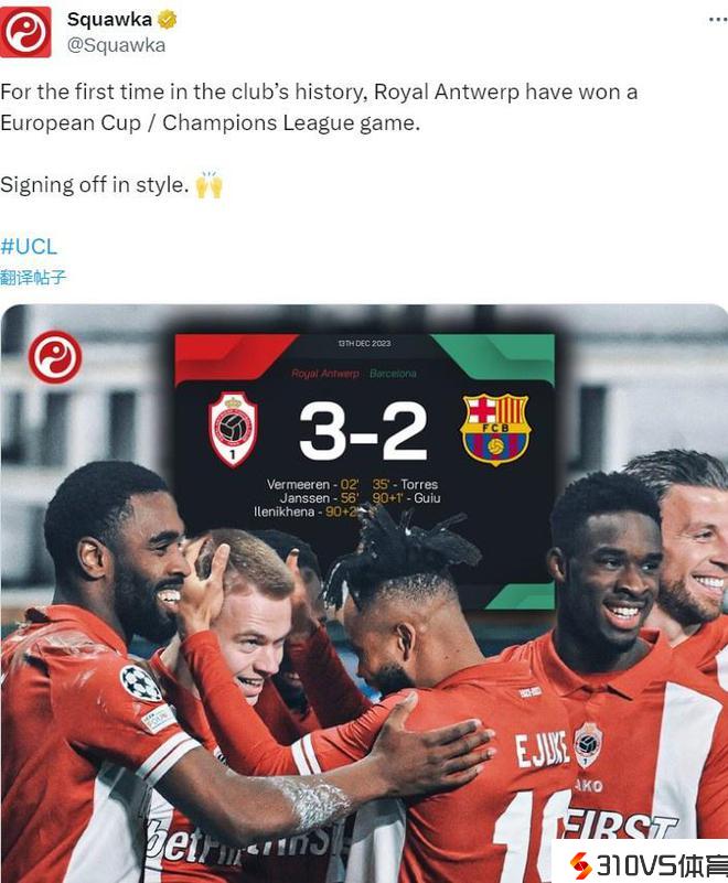 感谢巴萨老铁的礼物!安特卫普队史初次在欧冠竞赛中赢球