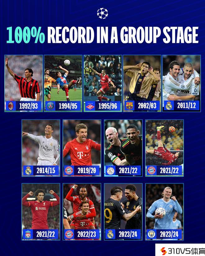 谁最让你印象深入?欧冠官方晒小组赛全胜队:皇萨仁城军米兰……