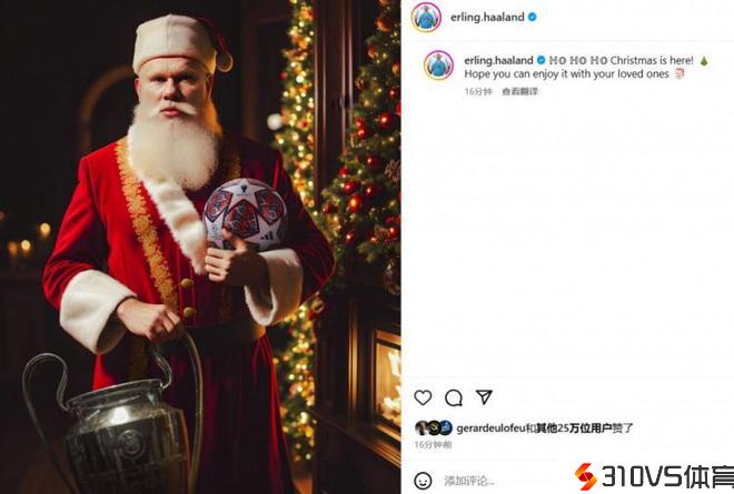 欧冠版圣诞老人!哈兰德:希望你们和你们爱的人享用节日