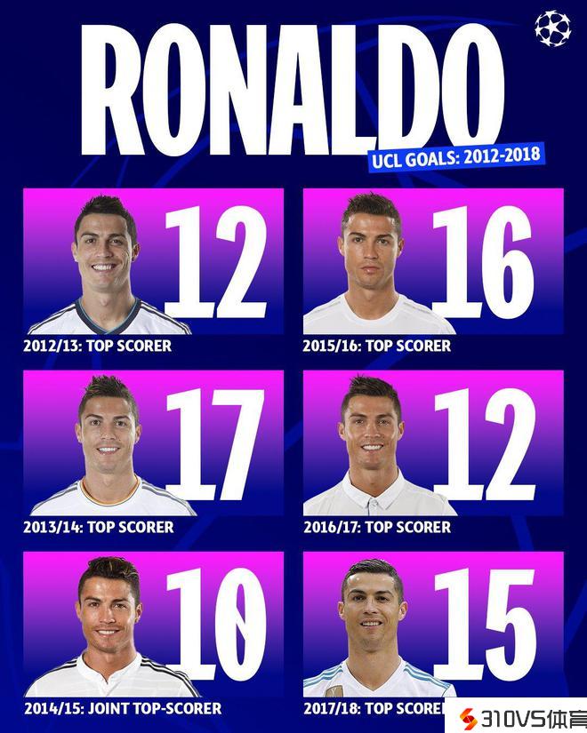 C罗=异乎寻常!欧冠官方晒C罗:延续六个赛季欧冠射手王