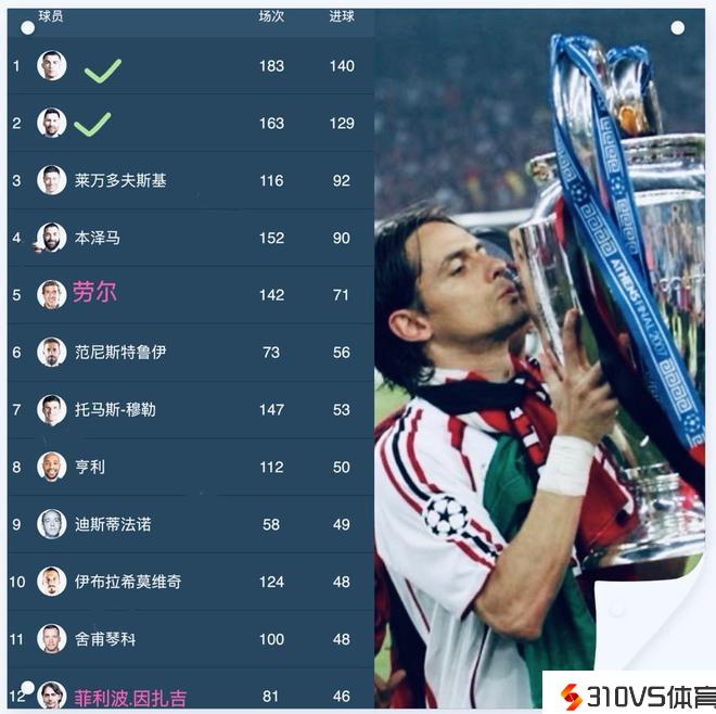 顶级前锋因扎吉在欧冠射手榜为何跌出前10名?