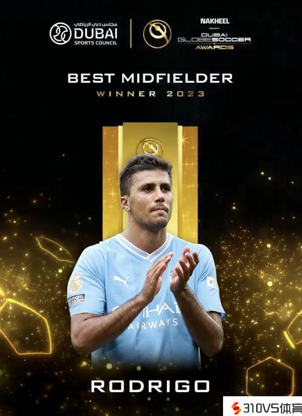 官方:罗德里取得2023环球足球奖最佳中场奖