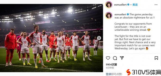 穆勒:对药厂的失利是场噩梦,争冠还没完毕但我们要先做好自己
