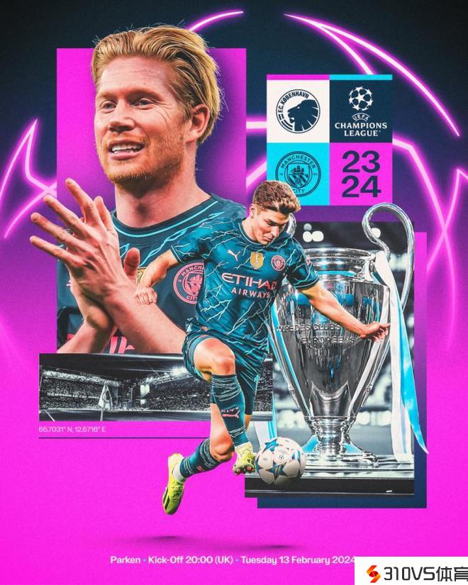 曼城晒海报预热欧冠战哥本哈根:德布劳内、小蜘蛛出镜