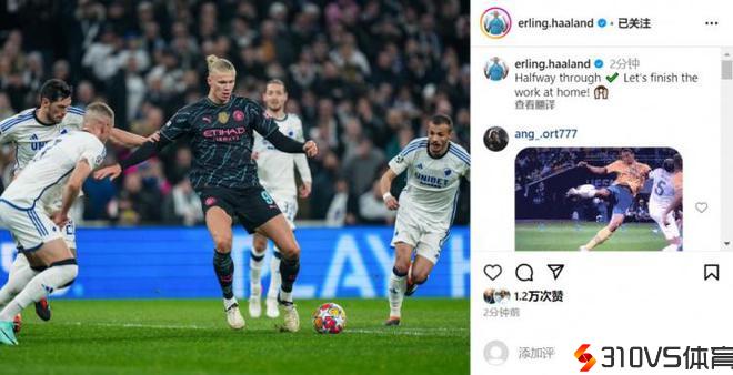 哈兰德庆贺成功:完成了一半,让我们在主场继续