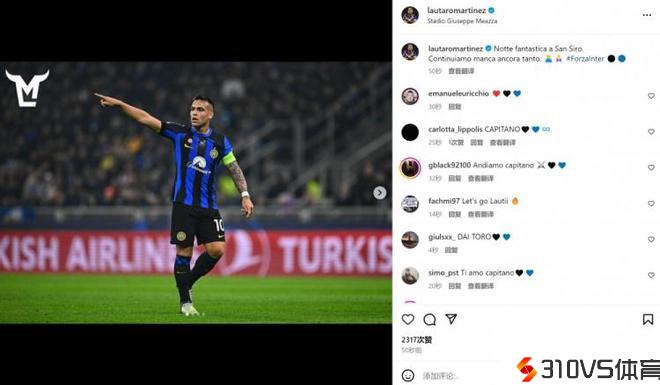 劳塔罗社媒晒照:圣西罗球场的美妙夜晚!我们还需求继续努力